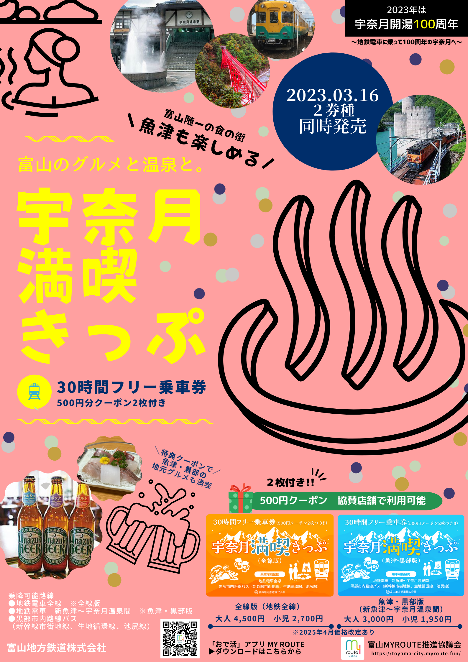 【3/16発売】宇奈月温泉へのお出かけに最適♪宇奈月満喫きっぷ発売開始!!